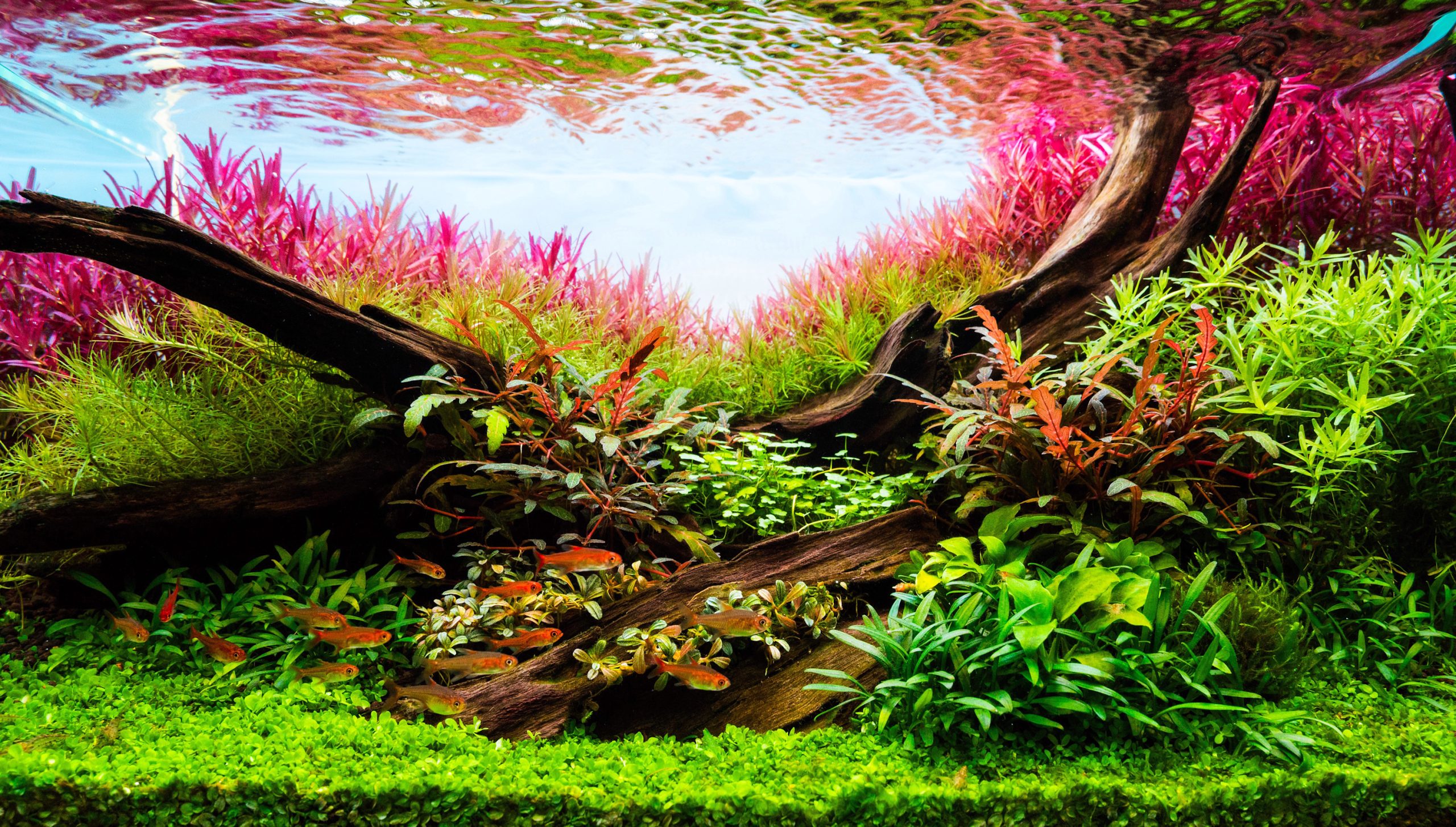 The focus was on creating a beautiful environment with just water plants by using long stretches of driftwood to a minimum.