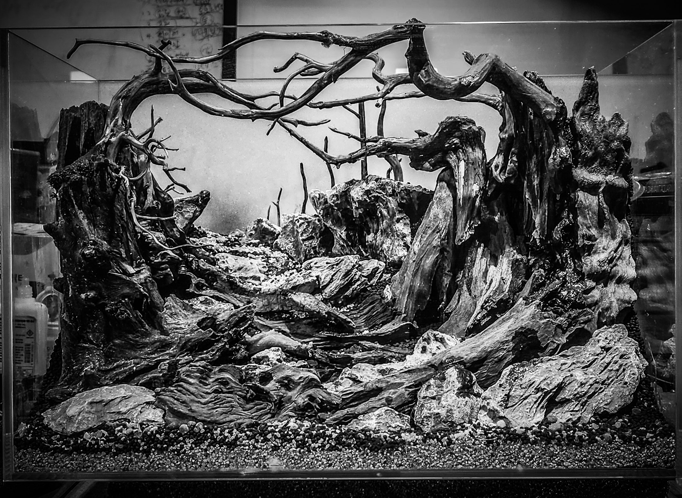 This aquascape artwork portrays a sacred sanctuary of life hidden deep within an untouched forest. The central path symbolizes a divine passage, while the towering driftwood resembles ancient tree guardians. The lush aquatic plants represent the cycle of life and the eternal flow of time. Despite being confined in a tank, the depth and perspective invite the viewer into a fairytale-like realm.